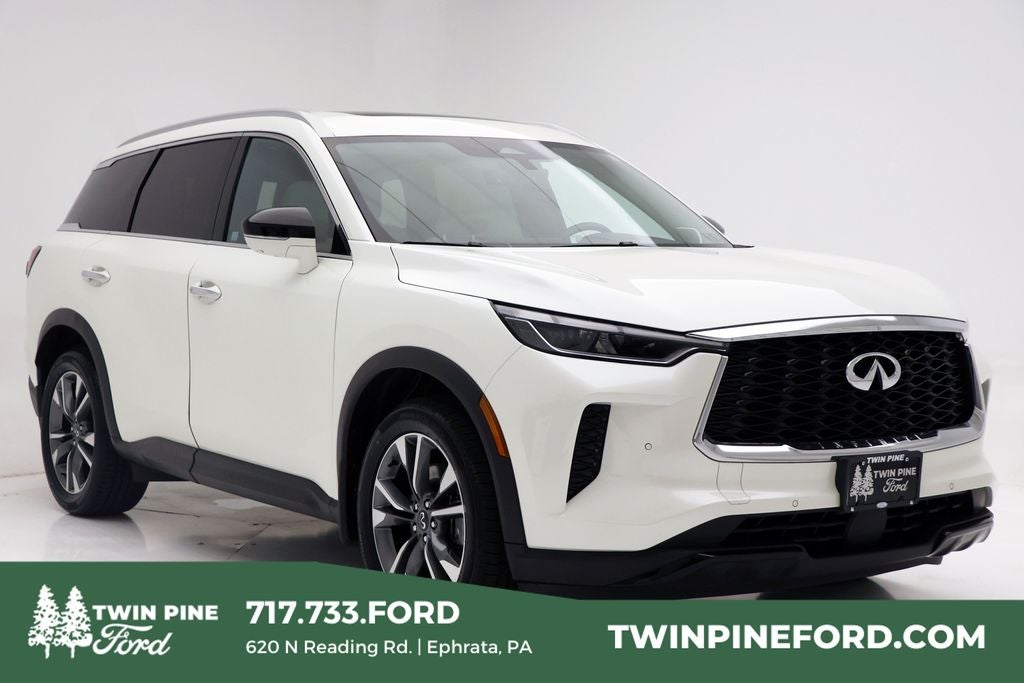 Twin Pine Ford has the Nicest Inventory at the Best Prices. 2023 INFINITI QX60 LUXE Majestic White AWD