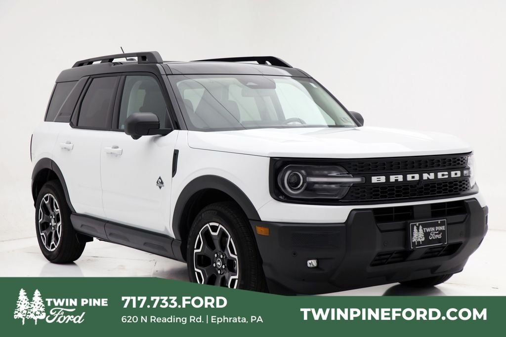 Twin Pine Ford has the Nicest Inventory at the Best Prices. 2025 Ford Bronco Sport Outer Banks 4WD Navigation, Sunroof, Leather, Heated Seats, Heated Steering Wheel, Keyless Ignition, Keyless Entry, Remote Start, Back Up Camera, Parking Sensors, Touchscreen Radio, Cruise Control, BluetoothĀ®, Fully Serviced, Vehicle Detailed, Vehicle Inspected, Automatic temperature control, B&O Sound System by Bang & Olufsen, Connected Navigation, Equipment Group 300A, Front Driver/Passenger Seat Back Map Pockets, Front dual zone A/C, Front Parking Sensors, HD Radio, Heated front seats, Memory seat, Outer Banks Tech Package+, Power Moonroof, Premium Trimmed Front Bucket Seats w/Ebony/Roast, Rear Parking Sensors, Wheels: 18 Ebony Black-Painted Aluminum. Oxford White